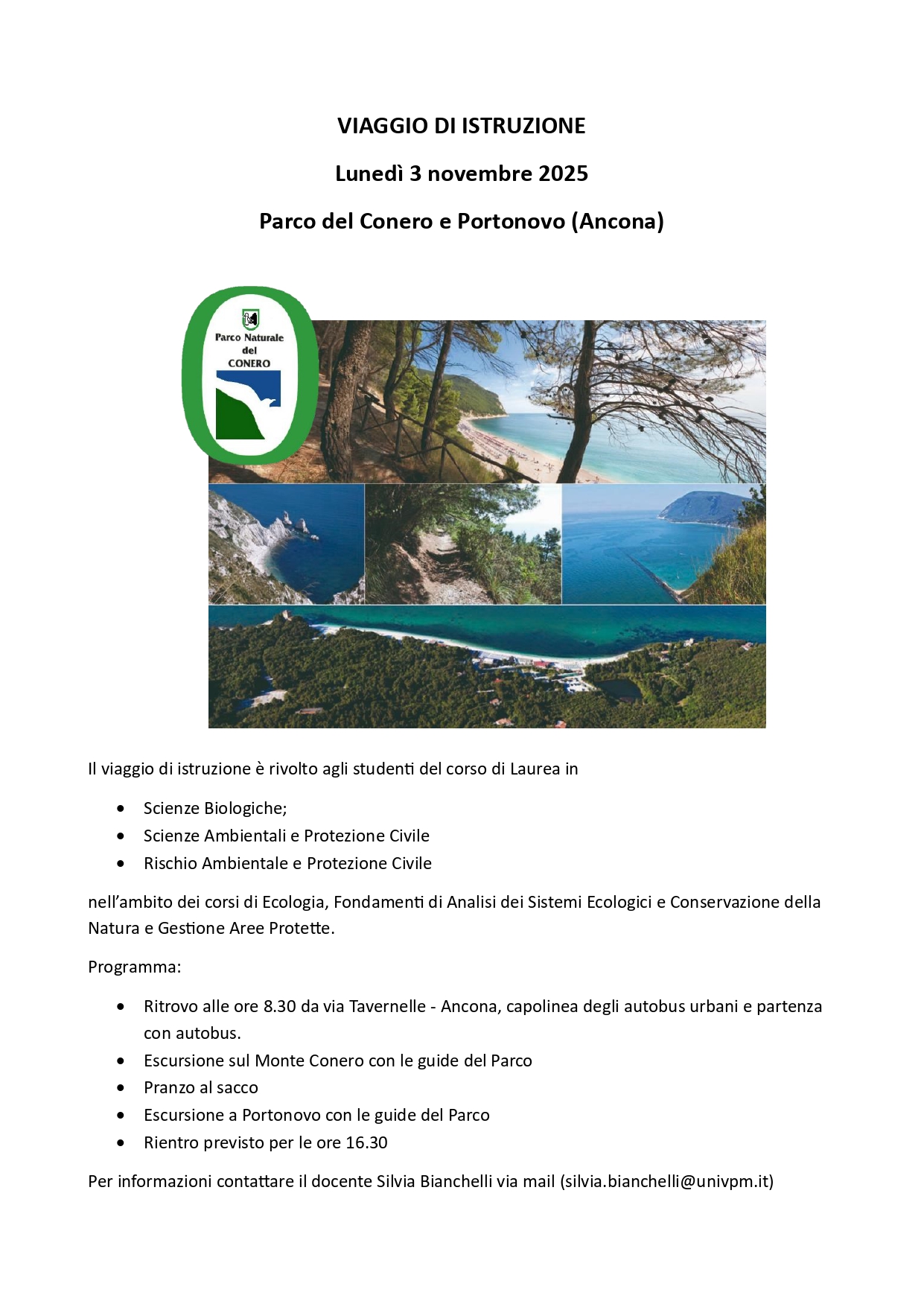 Viaggio d'istruzione: Parco del Conero e Portonovo (Ancona) 3 novembre 2025