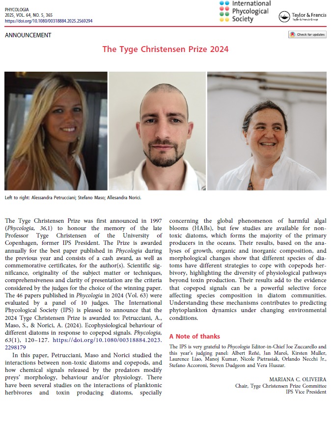 " Siamo lieti di annunciare che il lavoro svolto presso il Laboratorio di Fisiologia delle Alghe e delle Piante ha ricevuto il prestigioso Tyge Christensen Prize 2024 🏆.